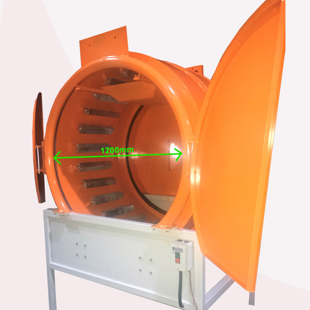The wet slurry dipped clusters are coated with sand or ‘stuccoed’. The machine produces a uniform sand rain in which the wet wax cluster is manipulated to obtain a uniform coating of the refractory sand. A full uniform rain, little or no spillage of expensive refractory, adjustable baffles, maintenance free machine.